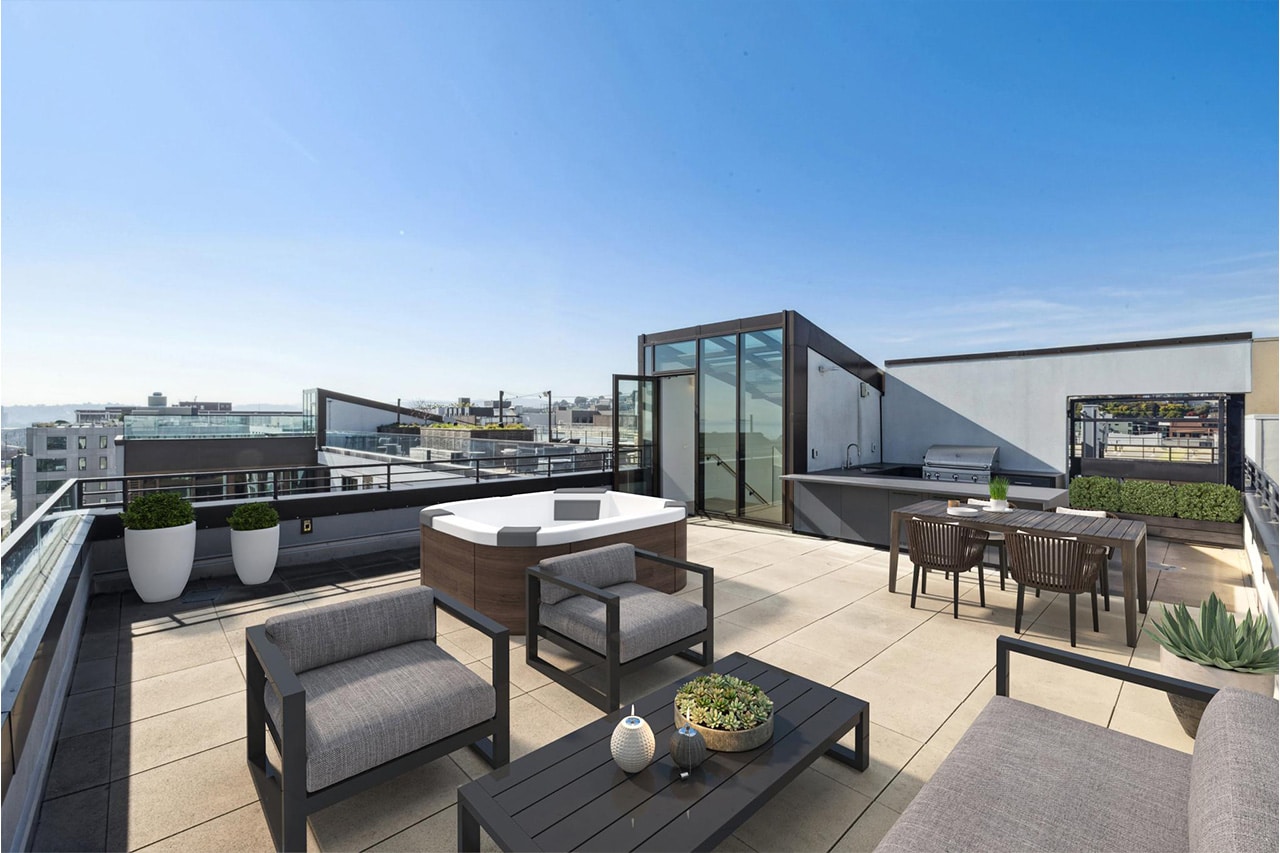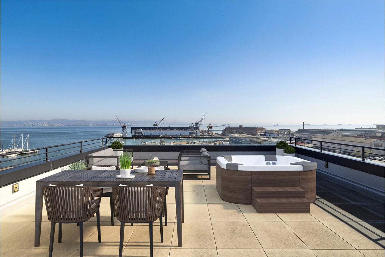 Perched atop 2177 Third is Penthouse 721. The hallmark of this home is the private rooftop deck, which is ideal for hosting and entertaining. Outfitted with a natural gas grill, a wash sink, a refrigerator, and an ice maker, your alfresco moments with friends and family are made seamless, allowing you to relax and take in the sights of the Bay. This outdoor space is designed to accommodate a custom hot tub, a rare opportunity.